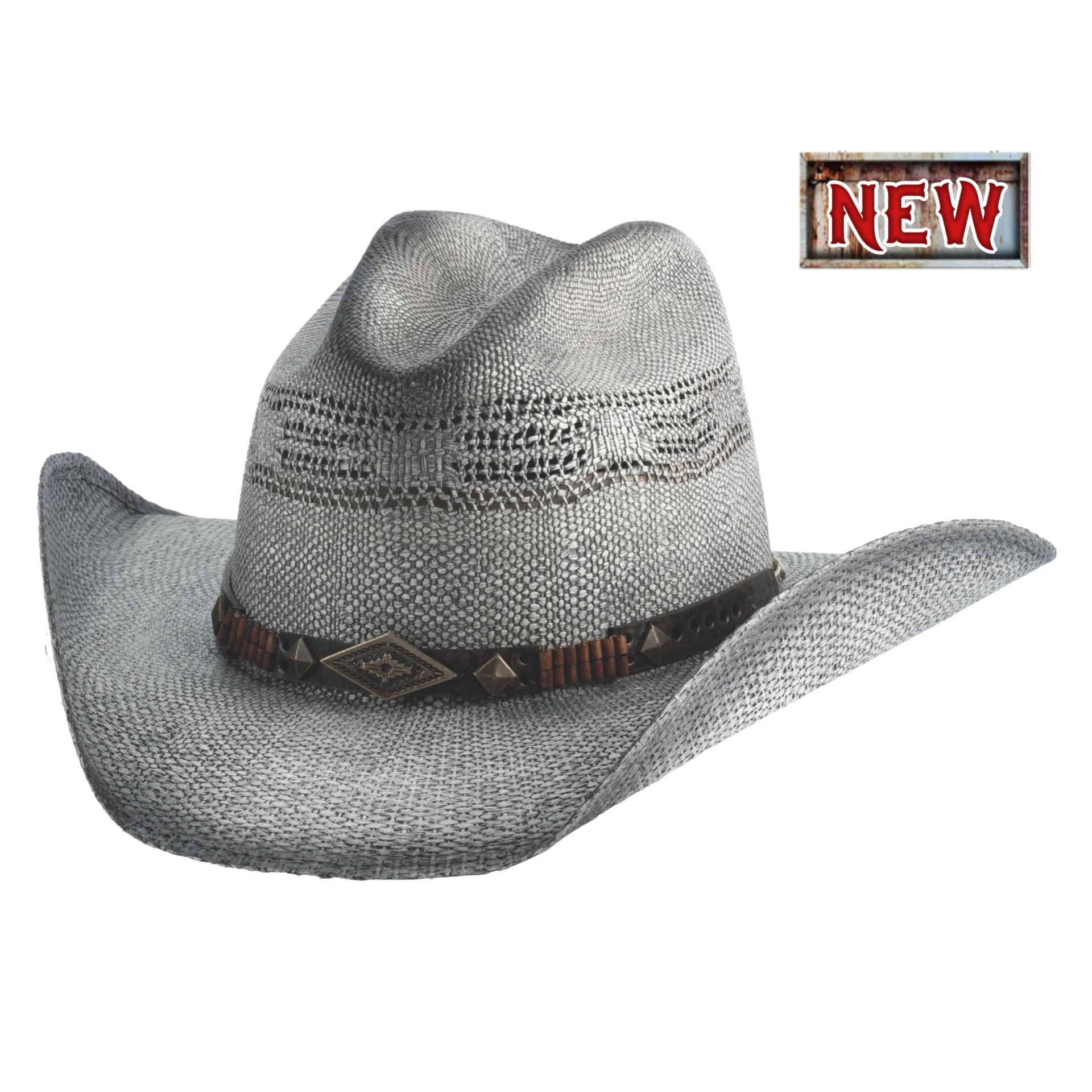 Oblikovalen zahodni slamnati klobuk z zanimivo barvo in okrasnim trakom. Z elastičnim notranjim trakom.